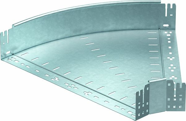 Bogen 45° mit Schnellverbindungs-System. Für alle Kabelrinnentypen mit der Seitenhöhe 110 mm.