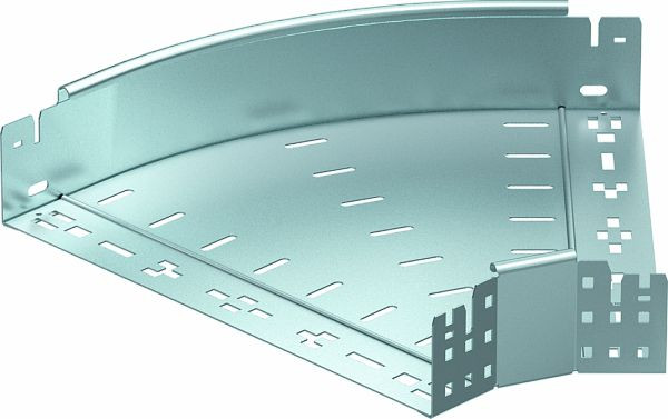 Bogen 45° mit Schnellverbindungs-System. Für alle Kabelrinnentypen mit der Seitenhöhe 85 mm.