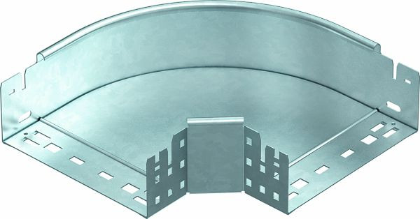 Bogen 90° mit Schnellverbindungs-System. Für alle Kabelrinnentypen mit der Seitenhöhe 85 mm.