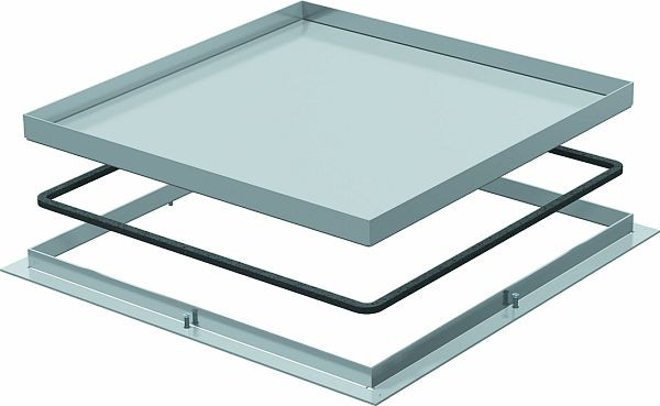 Rahmenkassette "blind" für die Herstellung einer Revisionsöffnung in der UZD350-3 in trocken oder nass gepflegten Fußböden im Innenbereich. Nur für glatte Bodenbeläge geeignet.