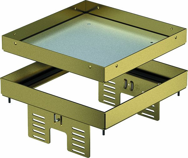 Nivellierbare und vom Fußboden entkoppelte Kassette "blind" für die Herstellung einer Revisionsöffnung der Nenngröße 4 in trocken oder nass gepflegten Fußböden im Innenbereich, zur Montage in Unterflurdosen UZD250 oder UZD350, jeweils in Verbindung mit einem Montagedeckel DUG../4 oder in UGD250-3/4 oder UGD350-3/4. Die Montage erfolgt mittels Nivellierwinkel (separat bestellen) im Aluminium-Rahmenprofil der Unterflurdosen. Nur für glatte Bodenbeläge geeignet.