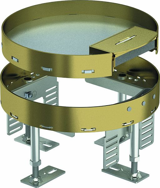 Nivellierbare Kassette der Nenngröße R4 mit Schnurauslass für den Einbau von Installationsgeräten in trocken gepflegten Fußböden im Innenbereich.