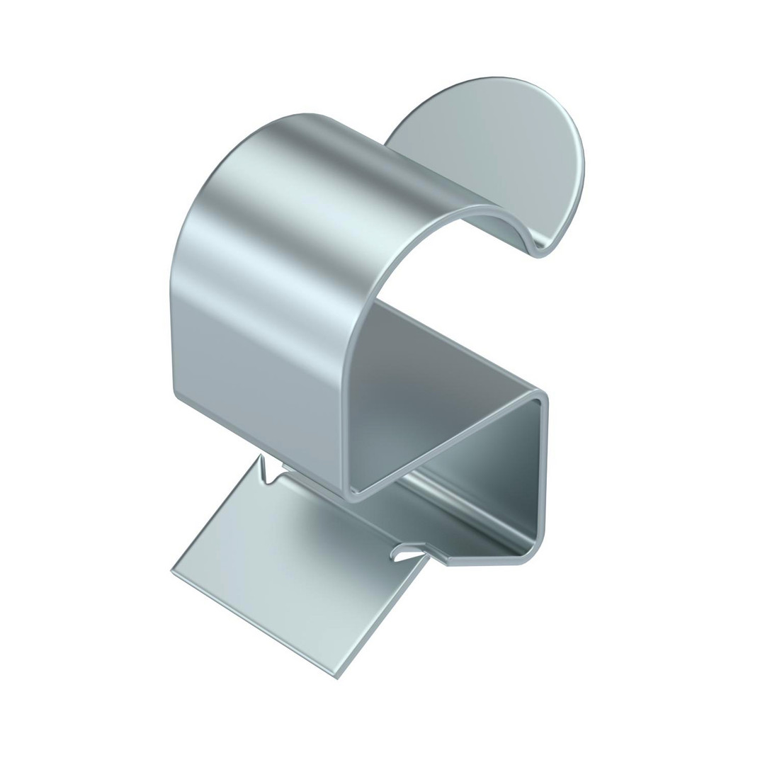 Trägerklammer zum Montieren von Kabeln. Offene Kabelaufnahme seitlich. Befestigung an Stahträgern durch Aufschlagen.
