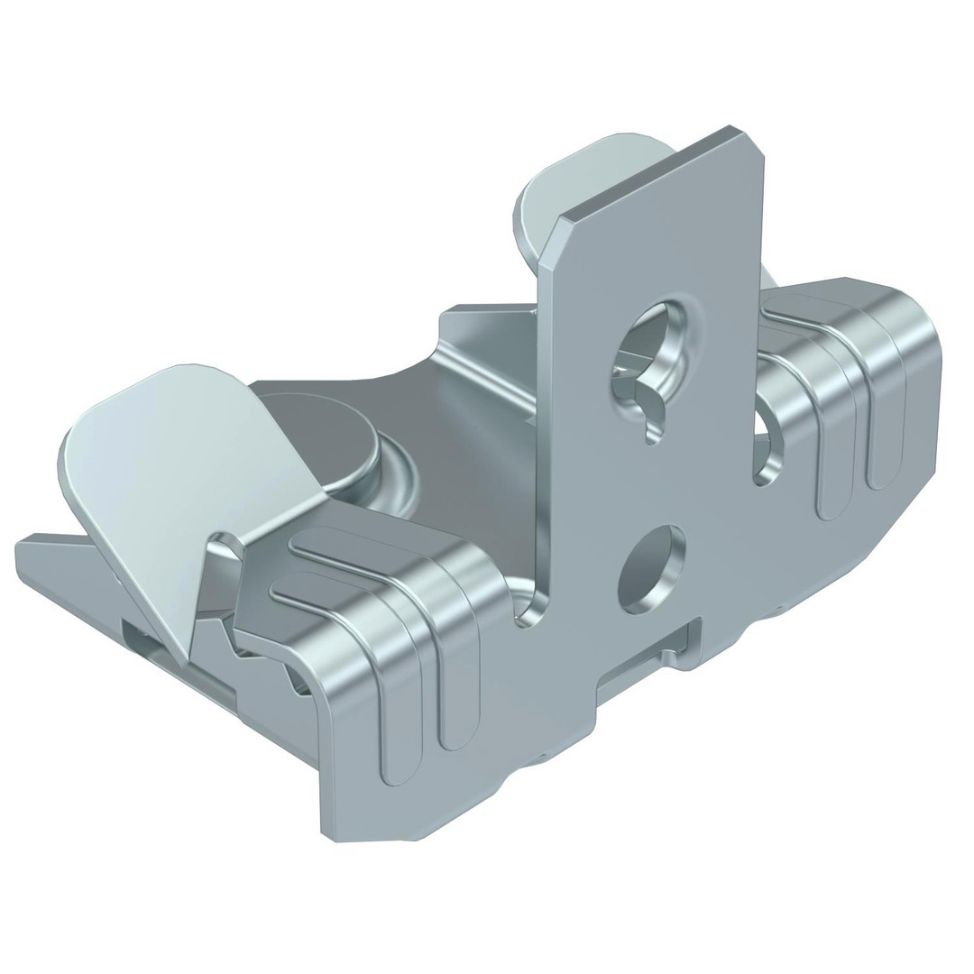 Trägerklammer mit Gewindebolzen M6 unten für individuelle Montagelösungen. Befestigung an Stahträgern durch Aufschlagen.