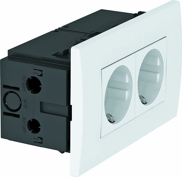 | Kurzbeschreibung | Steckdoseneinheit Modul 45, 2fach 84x140x59mm Polycarbonat reinweiß RAL 9010 |