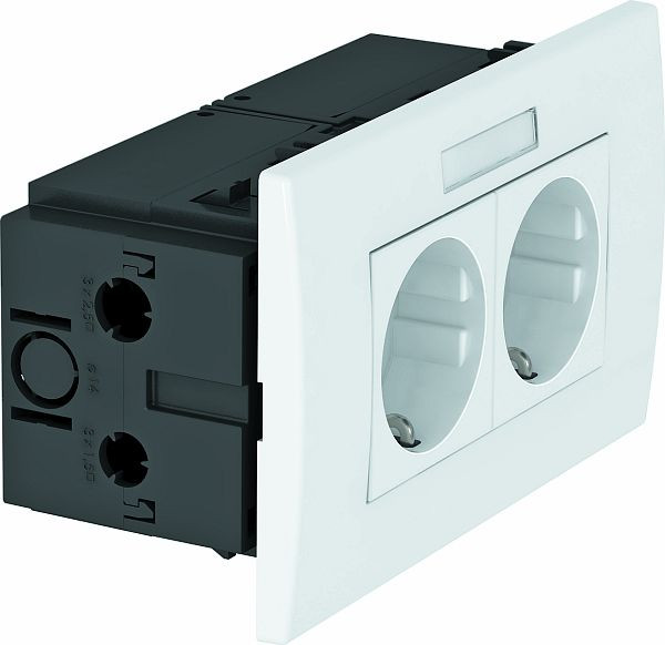 Vorkonfektionierte Steckdoseneinheit mit Beschriftungsfeld, geeignet für den Einbau in Geräteeinbau-Kanalsysteme Rapid 80.