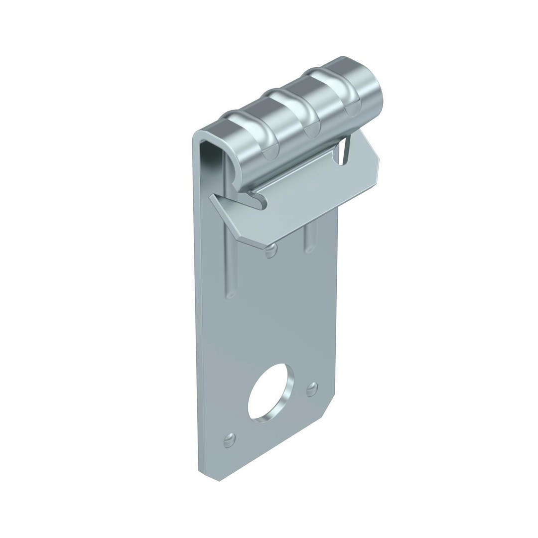 Trägerklammer mit Bohrung für individuelle Montagelösungen, z. B. für die Aufnahme von S-Haken oder Ketten. Befestigung an Stahträgern durch Aufschlagen.