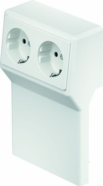 Geräteträger mit vorkonfektionierter 2-fach Schutzkontaktsteckdose für den Sockelleistenkanal in der Kanalbreite 110 mm.