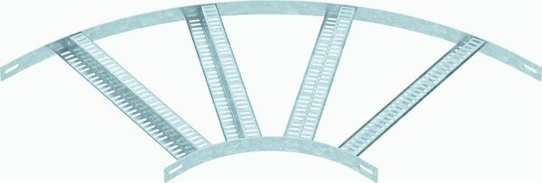 90° Bogen für Schiffsbau-Kabelleiter Typ SLZ L mit der Seitenhöhe 35 mm, mit eingeschweißten, gelochten Z-Sprossen.