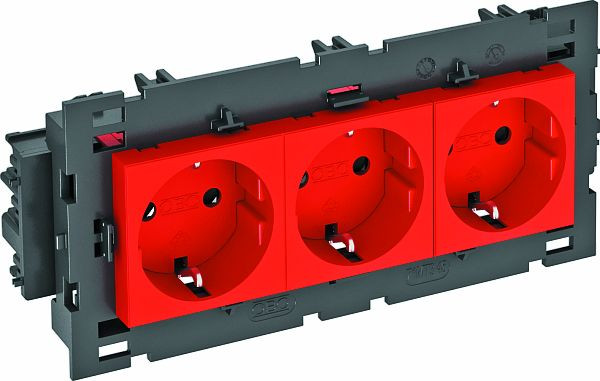 | Kurzbeschreibung | Steckdose 0°, 3-fach Schutzkontakt, Connect 80 250V, 10/16A Polycarbonat signalrot RAL 3001 |
