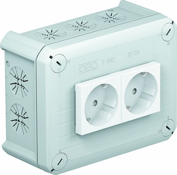 | Kurzbeschreibung | Kabelabzweigkasten mit 2 Schuko Steckdosen 33° ws 150x116x67 Polypropylen lichtgrau RAL 7035 |