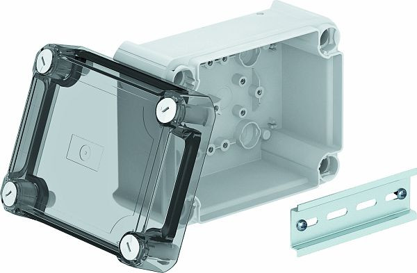 | Kurzbeschreibung | Kabelabzweigkasten geschlossen mit hohem transparentem Deckel 150x116x83 Polypropylen / Polycarbonat lichtgrau RAL 7035 |