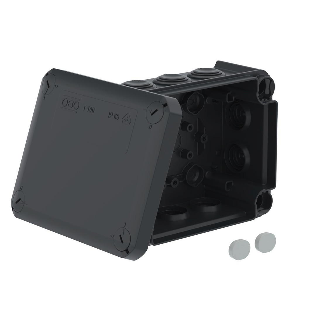 | Kurzbeschreibung | Kabelabzweigkasten mit Einführungen 150x116x67 Polypropylen graphitschwarz RAL 9011 |