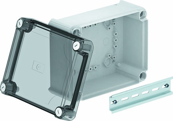 | Kurzbeschreibung | Kabelabzweigkasten geschlossen mit hohem transparentem Deckel 190x150x94 Polypropylen / Polycarbonat lichtgrau RAL 7035 |