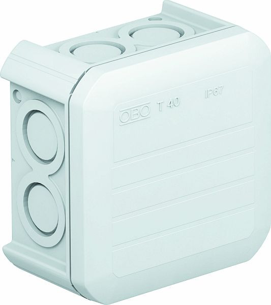 Kabelabzweigkasten zum Verbinden von Kabeln und Leitungen im Innenbereich und geschützten Außenbereichen. Quadratische Form mit Ausschlageinführungen an den Seiten und Ausschlageinführungen im Boden. Geeignet für die Wand-/ Deckenmontage und die Montage auf Montageblechen. Mit der Möglichkeit zur Innenbefestigung und Montage über die Eckdome. Mit festsitzendem Klemmdeckel. Hergestellt aus halogenfreien und UV-resistenten Materialien. Kabelabzweigkasten gemäß DIN EN 60670. Flammwidrig nach DIN EN 60695-2-11, Prüftemperatur 650°C. Schlagfestigkeit IK07 gemäß DIN EN 50102.