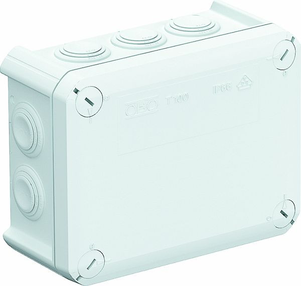 Kabelabzweigkasten zum Verbinden von Kabeln und Leitungen im Innenbereich und geschützten Außenbereichen. Rechteckige Form mit Einsteckdichtungen an den Seiten und Ausschlageinführungen im Boden. Geeignet für die Wand-/ Deckenmontage und die Montage auf Montageblechen. Mit der Möglichkeit zur Innenbefestigung und Montage über die Eckdome. Deckel mit Schnellverschluss, plombierbar. Hergestellt aus halogenfreien Materialien. Flammwidrige Ausführung aus speziellem Polypropylen.