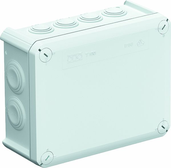 | Kurzbeschreibung | Kabelabzweigkasten mit Einführungen 190x150x77 Polypropylen, glasfaserverstärkt lichtgrau RAL 7035 |