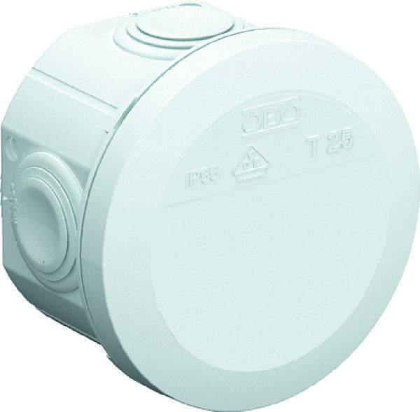 Kabelabzweigkasten zum Verbinden von Kabeln und Leitungen im Innenbereich und geschützten Außenbereichen. Runde Form mit Einsteckdichtungen an den Seiten und Ausschlageinführungen im Boden. Geeignet für die Wand-/ Deckenmontage, die Montage auf Montageblechen und Gewinde im Boden. Mit der Möglichkeit zur Innenbefestigung. Mit festsitzendem Klemmdeckel. Hergestellt aus halogenfreien Materialien. Flammwidrige Ausführung aus speziellem Polypropylen.