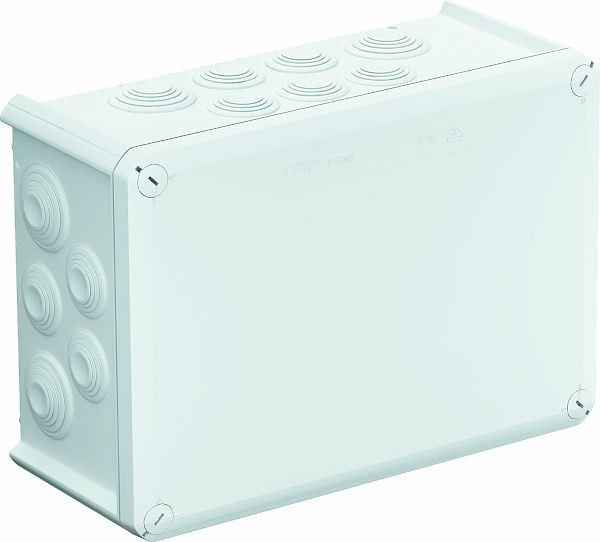 Kabelabzweigkasten gemäß DIN EN 60670. Flammwidrig nach DIN EN 60695-2-11, Prüftemperatur 960°C. Schlagfestigkeit IK05 gemäß DIN EN 50102.