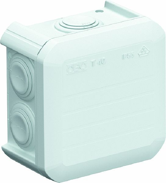 Kabelabzweigkasten zum Verbinden von Kabeln und Leitungen im Innenbereich und geschützten Außenbereichen. Quadratische Form mit Einsteckdichtungen an den Seiten und Ausschlageinführungen im Boden. Geeignet für die Wand-/ Deckenmontage und die Montage auf Montageblechen. Mit der Möglichkeit zur Innenbefestigung. Mit festsitzendem Klemmdeckel. Flammwidrige Ausführung aus speziellem Polypropylen.