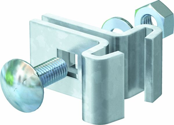 Trägerklaue mit Flachrundschraube FRS M10 x 25 für die Montage am IS 8-Stiel.