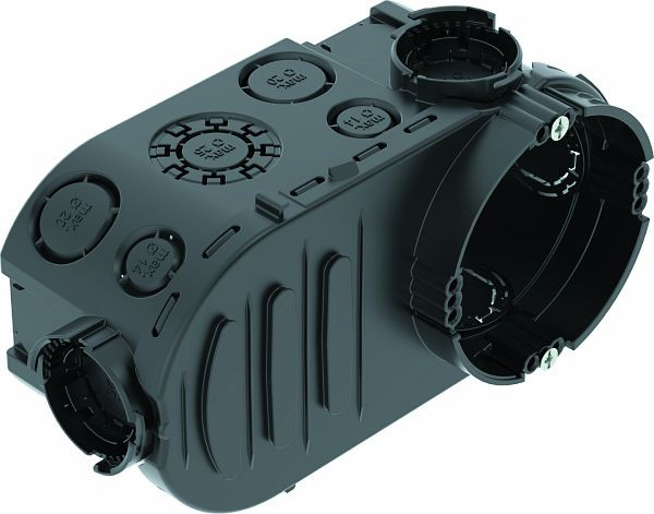 Unterputz-Elektronikdose mit zusätzlichem Klemmraum, für den Einsatz in Mauerwerk mit einer Einbautiefe von mindestens 66 mm.