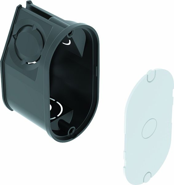 Unterputz-Wandauslassdose zur Einzelkabelverlegung. Ovale Form, für den Einsatz in Mauerwerk mit einer Einbautiefe von mindestens 35 mm.