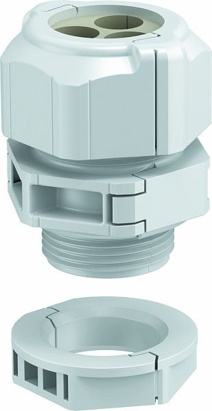 | Kurzbeschreibung | Kabelverschraubung, teilbar Dichteinsatz, mehrfach M20 Polycarbonat lichtgrau |