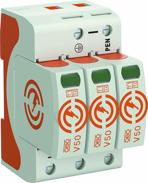 • Blitzstromableitvermögen 12,5 kA (10/350) pro Pol und bis zu 50kA (10/350) gesamt