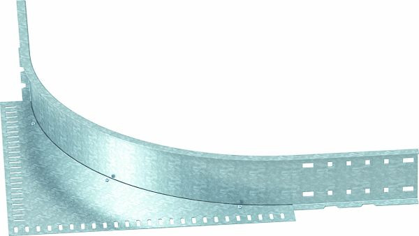 Eckanbaustück für Weitspannkabelrinnen und -leitern mit der Seitenhöhe 110 mm.