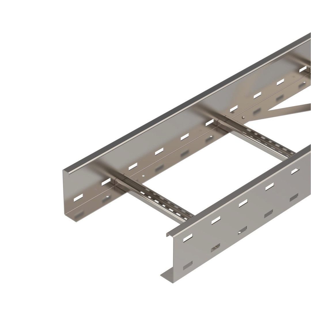 | Kurzbeschreibung | Weitspannkabelleiter gelochter Seitenholm 110x300x6000 Edelstahl, rostfrei A2 1.4301 blank, nachbehandelt |