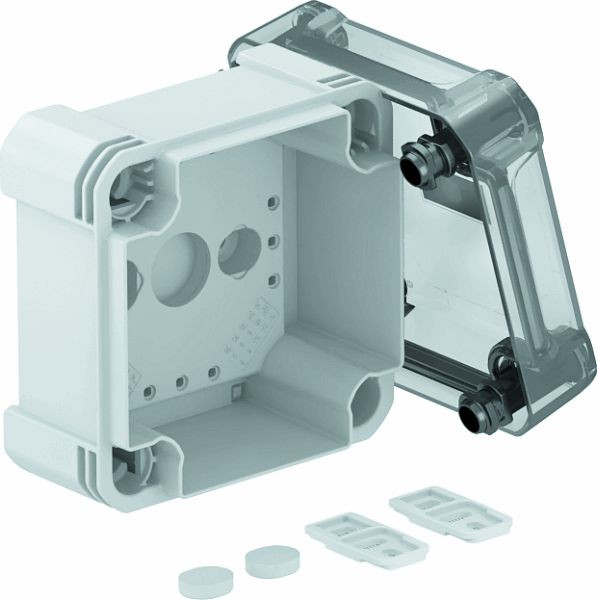 | Kurzbeschreibung | Leergehäuse mit transparentem Deckel 114x114x78 Polycarbonat grau / transparent |