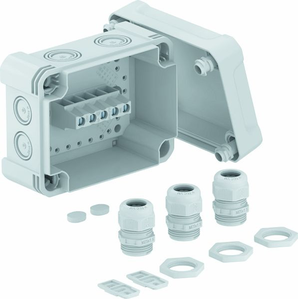 In den robusten Kabelabzweigkästen der X-Serie werden elektrische Leitungen zusammengeführt. Sie sind für den Innen- und Außenbereich geeignet. Zur leichten Kabeldurchführung sind die Einführungsöffnungen vorgeprägt.