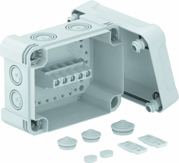 | Kurzbeschreibung | Kabelabzweigkasten mit Klemmleiste 150x116x86 Polycarbonat lichtgrau RAL 7035 |