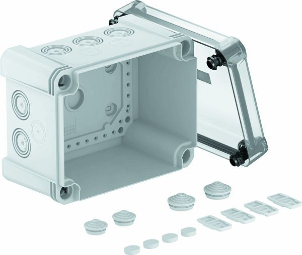 | Kurzbeschreibung | Kabelabzweigkasten mit transparentem Deckel 190x150x125 Polycarbonat grau / transparent |