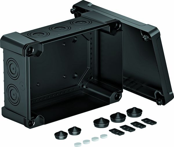 | Kurzbeschreibung | Kabelabzweigkasten 286x202x125 Polycarbonat graphitschwarz RAL 9011 |