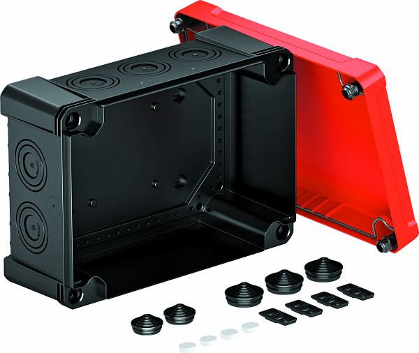 | Kurzbeschreibung | Kabelabzweigkasten mit rotem Deckel 286x202x125 Polycarbonat schwarz / rot |
