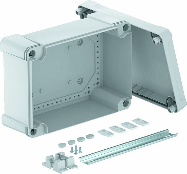 | Kurzbeschreibung | Leergehäuse mit Schiene 2069 286x202x125 Polycarbonat lichtgrau RAL 7035 |