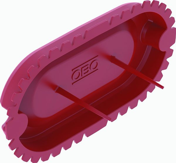 Deckel für Wandauslassdose zum Schutz beim Verputzen. Rot, mit Signalborsten zur Positionsbestimmung.