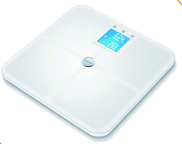 Vernetzung zwischen Smartphone und Waage: automatische Datenübermittlung innerhalb der Bluetooth®-Reichweite nach Öffnen der App, moderner Sandwich-Aufbau mit ITO-Oberflächenveredelung, 2-zeiliges Display im Dot-Matrix-Look, weiße Zifferbeleuchtung mit Anzeige von Initialen des Benutzers, LED-Motivator: farbige Rückmeldung zur Zielerreichung, Trendanzeige in der App, Zifferngröße: 23 mm, Körpergewicht, -fett, -wasser, Muskelanteil, Knochenmasse, BMR + AMR (Grundumsatz und Aktivitätsumsatz in Kcal) und BMI, Schwangerschaftsmodus für kontrollierte Gewichtszunahme, Einteilung: 100 g/0,1%, 5 Aktivitätsgrade, 8 Benutzerspeicher mit automatischer Benutzererkennung, 30 Messwert-Speicherplätze, Einschalttechnik: Quick-Start, Umstellung von kg/lb/st, 5 Jahre Garantie