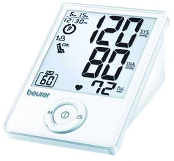automatische Blutdruck- und Pulsmessung für einen Oberarmumfang von 22-33cm, Einstufung der Messergebnisse, 1-Kanal EKG zur Aufzeichnung des Herzrythmus, erkennt Vorhofflimmern und Extrasystolen, 2x60 Speicherplätze, Alarmfunktion, Anzeige von Datum und Uhrzeit, Abschaltautomatik, Batteriewechselanzeige