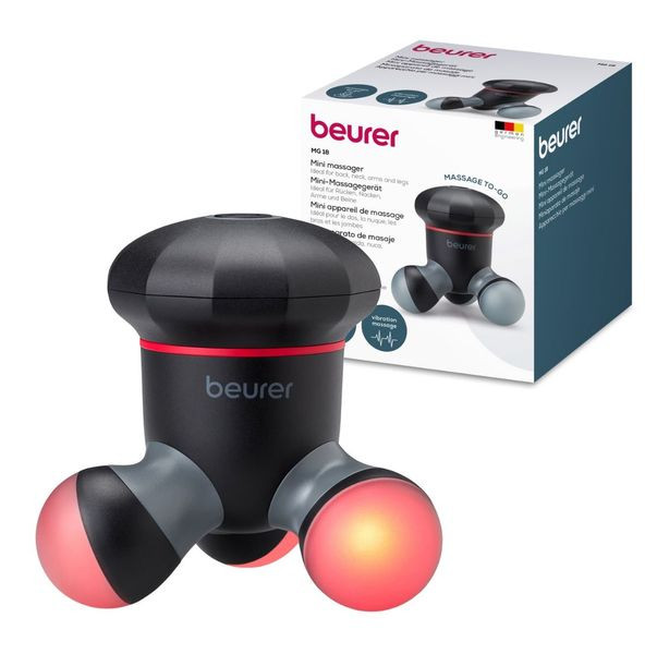 Mit dem Mini-Massagegerät von Beurer musst du auch unterwegs auf eine wohltuende Massage nicht verzichten. Das MG 18 passt in jede Handtasche und verwöhnt deinen Rücken, Nacken, deine Beine oder Arme jederzeit zwischendurch mit einer sanften Vibrationsmassage.