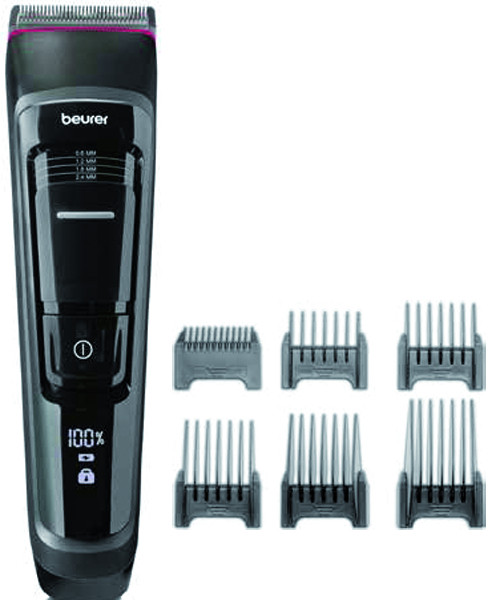 Klinge aus rostfreiem Stahl für einen schnellen und effizienten Haarschnitt, 10 verschiedene Schnittlängen, 4-stufige Feinjustierung: 0,6, 1,2, 1,8 und 2,4 mm, 6 Kammaufsätze mit 3, 6, 10, 16, 19 und 25 mm, abnehmbarer Schneidaufsatz für hygienische Reinigung unterfließendem Wasser, Li-Ion Akku, Akkukapazität ca. 4 Std., Ladezeit 3 Std., LED-Anzeige mit Batteriestatus in %, Ladezustand und Reisesicherungsanzeige, USB-C Kabel, Reinigungspinsel und Öl, Aufbewahrungstasche, 3 Jahre Garantie