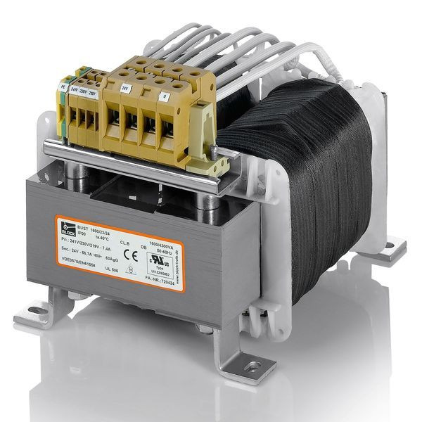 Steuertransformator zur elektrischen Trennung der Ein- und Ausgangsseite. Durch die Konstruktion ist der Transformator zur Versorgung von Steuerungen entsprechend EN 60204 ausgelegt.