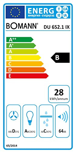 60 cm Wandesse, Edelstahl, Umluft- oder Abluftbetrieb, 3 Leistungsstufen, LED-Beleuchtung (1 x 2 W warmweiß), separat schaltbar, Bedienung über Schiebeschalter, 2 Stück 5-lagiger Aluminium-Dunstfilter (Spülmaschinen geeignet), Teleskopschacht aus Edelstahl, 2-teilig, Inkl. Befestigungsmateial, Anschlussstutzen mit Rückschlagklappen, flexibler Abluftschlauch
