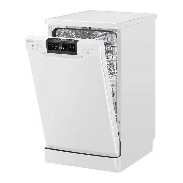 LED-Display mit Programm-Startvorwahl 1-24 h und Restlaufzeitanzeige, Anzeige für Salz-/Klarspülermangel, 7 Programme: Intensivspülen, Universalspülen, ECO (Sparspülen), Gläserspülen, 90 Min. Spülen, Schnellspülen (30 Min.), Vorspülen; 1/2 Beladungsfunktion, autom. Türöffnungsfunktion nach Programmende, höhenverstellbarer Oberkorb mit Tassenablage, klappbare Gläser-/Tellerhalterung, Besteckkorb/Besteckablage; elektr. Zulaufschlauch-Sicherheitssystem, Kindersicherung