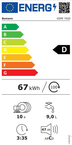| Energieeffizienzklasse Geschirrspüler (2019/2017/EU) | D |