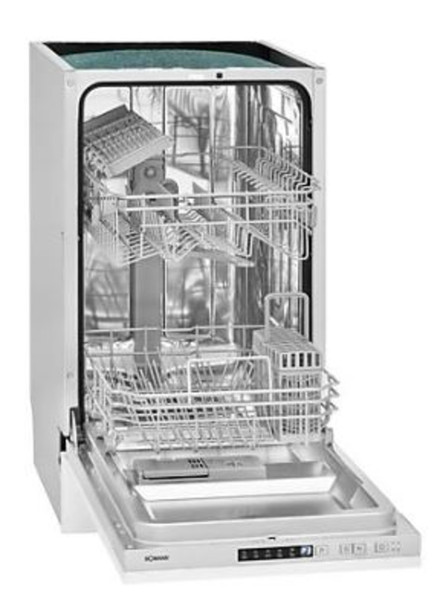 Der vollintegrierbare Geschirrspüler mit 45 cm Breite bietet Platz für 10 Maßgedecke - ideal für kleine Küche, Wählen Sie aus 5 Programmen wie Intensivspülen, ECO und Schnellspülen, um Ihr Geschirr optimal zu reinigen, Dank Programm-Startvorwahl (1-24 h) passt sich der Geschirrspüler Ihrem Zeitplan an, Integrierte Wasserenthärtungseinrichtung und Klarspüler-Dosierung sorgen für eine lange Lebensdauer Ihrer Gläser, Mit Überlaufsicherung und Energieverbrauch von nur 0,674 kWh pro Zyklus ist der Geschirrspüler sicher und umweltfreundlich