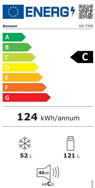 | Durchschnittlicher Energieverbrauch in kWh/Jahr | 124 kWh |