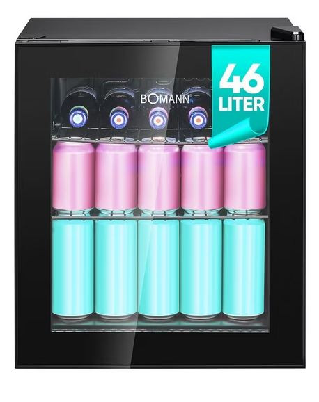 Nutzinhalt: 46 Liter, LED Innenraumbeleuchtung, separat schaltbar, Stufenlose Temperaturregelung, Temperaturbereich: +3°C ~ +18°C, 2 Gitterablagen, Getränkehalterungsbügel, Doppelverglaste Gerätetür mit schwarzem Rahmen und eingelassenem Handgriff, Türanschlag rechts, wechselbar, Justierbare Standfüße